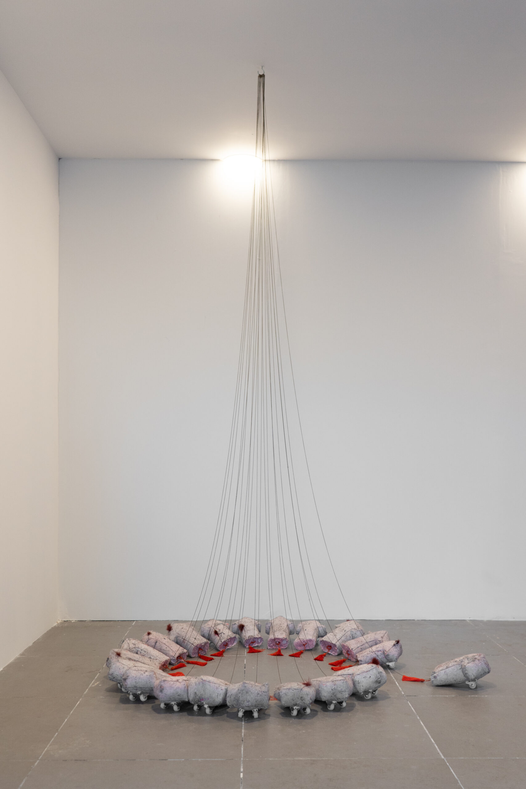 The exhibition The Floor is Lava is Tamar Hecht’s first solo exhibition after graduating from the Bezalel Academy. It is an installation sculpture exhibition that takes place inside the studio where Hecht works, maintaining continuous communication with Allenby Street. The materials in the exhibition come from shops around the studio. These materials undergo digestion processes within the studio space and emerge in their new configuration in the shop window. The exhibition presents Hecht’s strong obsession with Sidekit stores and explores the gap between the pleasure and playfulness of studio work and the heaviness of existing reality.